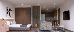 Conservamos muros de ladrillo, molduras clásicas y techos altos para dar vida a espacios con carácter. Cada unidad combina materiales naturales y detalles auténticos que generan calidez y comodidad, logrando un equilibrio entre lo clásico y lo contemporáneo.