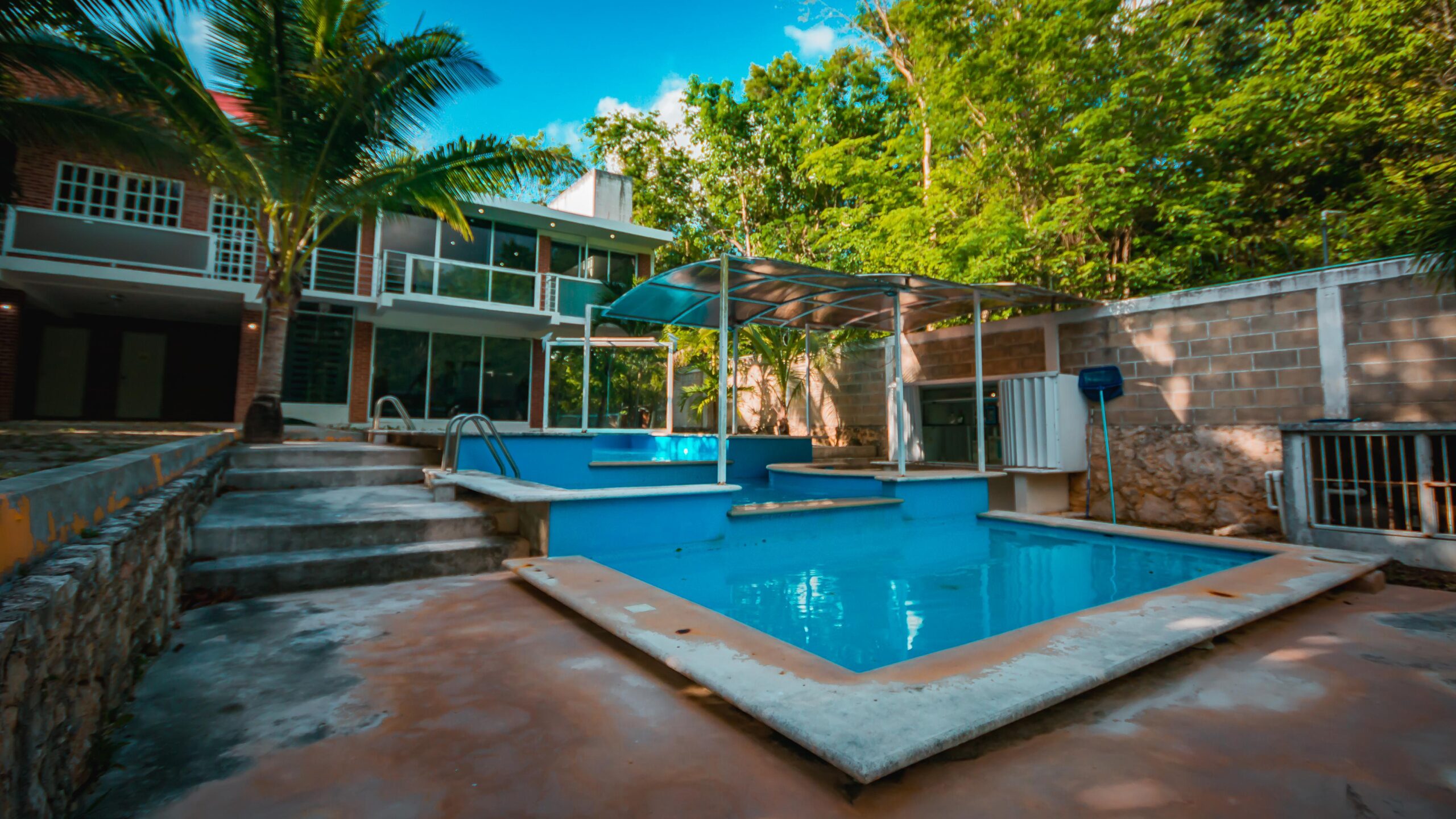 • Alberca de 3 niveles con pool bar, ideal para reuniones y diversión.